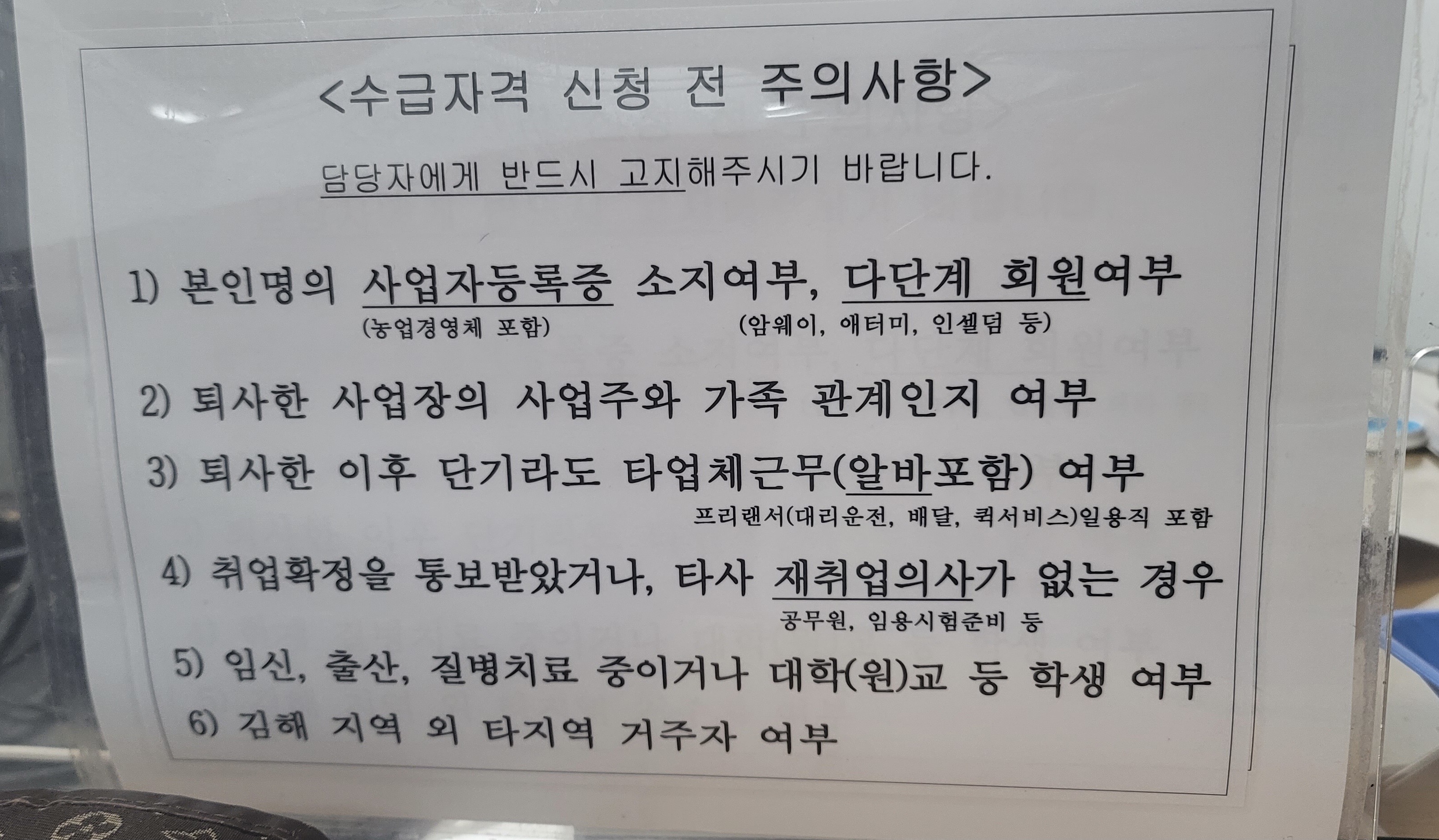 창구직원:주의사항 읽어보시고 해당되는것을 말씀해 주세요^^